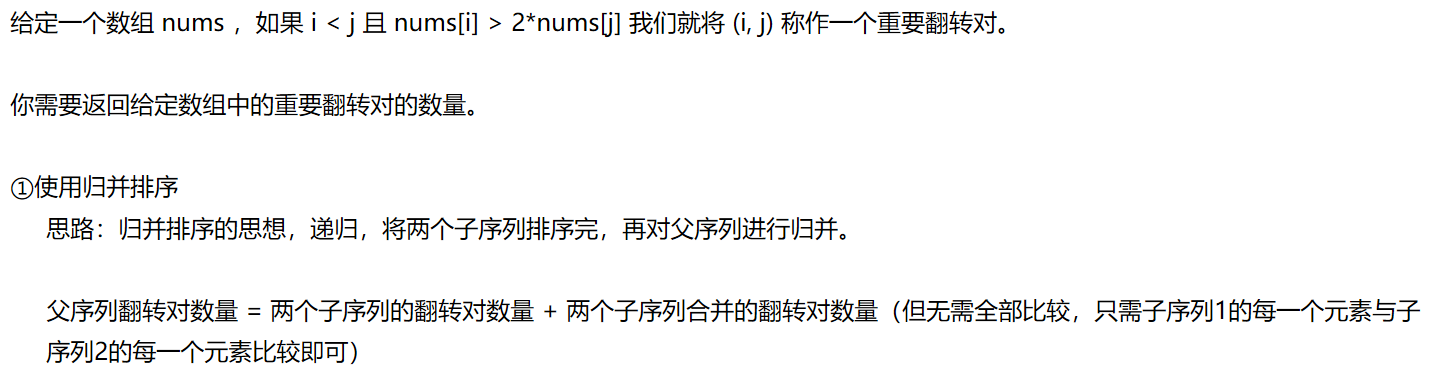 #include<iostream> #include<iomanip> #include <algorithm> #include <bitset> #include <list> #include <map> #include <queue> #include <set> #include <stack> #include<unordered_map> using namespace std; void print(vector<int>& nums) { for (auto i : nums) { cout << i << ' '; } cout << endl; } int mergeSortRecursive(vector<int>& nums, int left, int right) { if (left == right) { return 0; } int mid = (left + right) / 2; int res = mergeSortRecursive(nums, left, mid) + mergeSortRecursive(nums, mid + 1, right); //cout << left << ' ' << right << endl; int i = left, j = mid + 1; while (i <= mid) { while (j <= right && 2 * (long long)nums[j] < (long long)nums[i]) { j++; } res += (j - mid - 1); i++; } vector<int> tmp(right - left + 1); i = left; j = mid + 1; int loop = 0; while (i <= mid&&j<=right) { if (nums[i] < nums[j]) { tmp[loop++] = nums[i++]; } else { tmp[loop++] = nums[j++]; } } while (i <= mid) { tmp[loop++] = nums[i++]; } while (j <= right) { tmp[loop++] = nums[j++]; } for (i = 0; i < tmp.size(); ++i) { nums[left + i] = tmp[i]; } return res; } int reversePairs(vector<int>& nums) { if (nums.size() <= 1) { return 0; } return mergeSortRecursive(nums, 0, nums.size() - 1); } int main() { vector<int> nums = { 1, 3, 2, 3, 1 }; cout << reversePairs(nums) << endl; print(nums); }