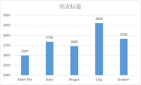 本次数据集包含了五种鞋类的图片,每个文件夹对应着不同的图片信息,首先通过统计每类写的图片数量,绘制出图片分类柱状图。