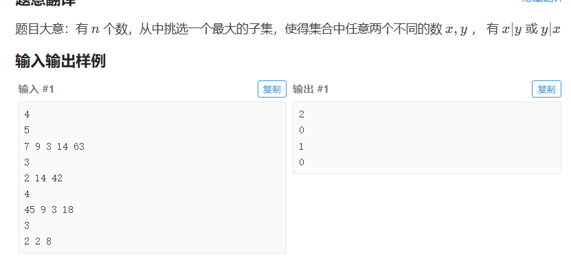 然后这个就很像背包了 不同的是第二层是直接枚举约数装进去 写法上也很讲究 我指的是初始化 没有初始化!只有边做边初初始化 为什么呢 因为对于所有的数而言 是取max 然后加上本身 如果一开始所有人都是 做的时候取max是啥意思! 对吧