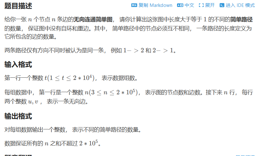 \(C_n^2\) ,那很明显答案就是那些环上的可以*2 别的其实都是 1 ,于是我们大不了把所有人都认为是2 然后减去不是环的子树就行了 非常巧妙