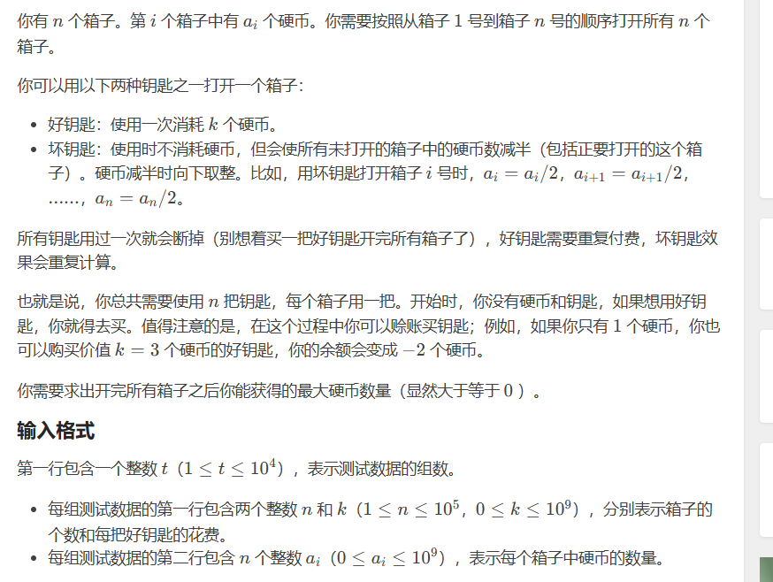 注意到数据1e9 可以发现最多用30把坏钥匙 再用了都是0