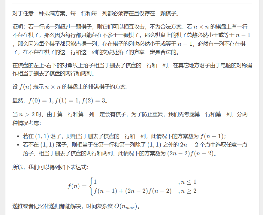 假设现在我们有n个元素 第n个元素放在一个位置上有n-1种放法对吧