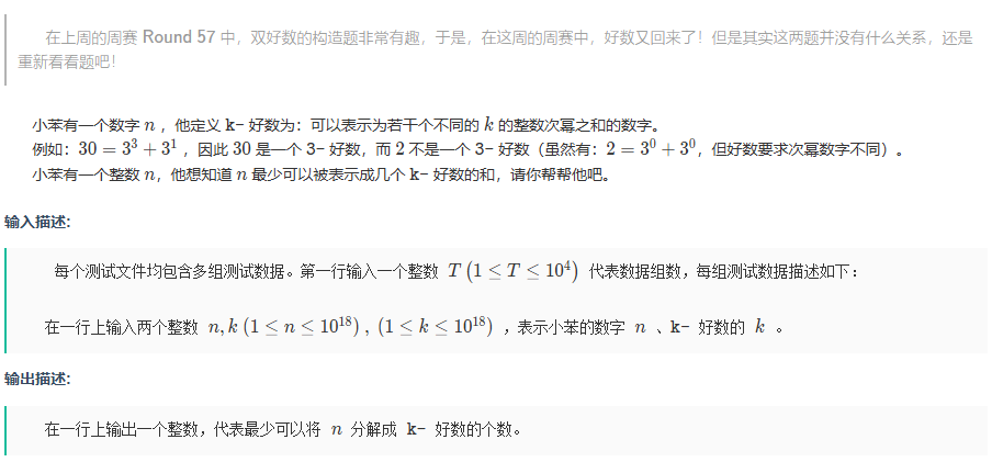 其实不然 题目限定了long long范围 再是k的指数递增很快 某一时刻那个数字下次再进位大于1e18了 我们就该结束了