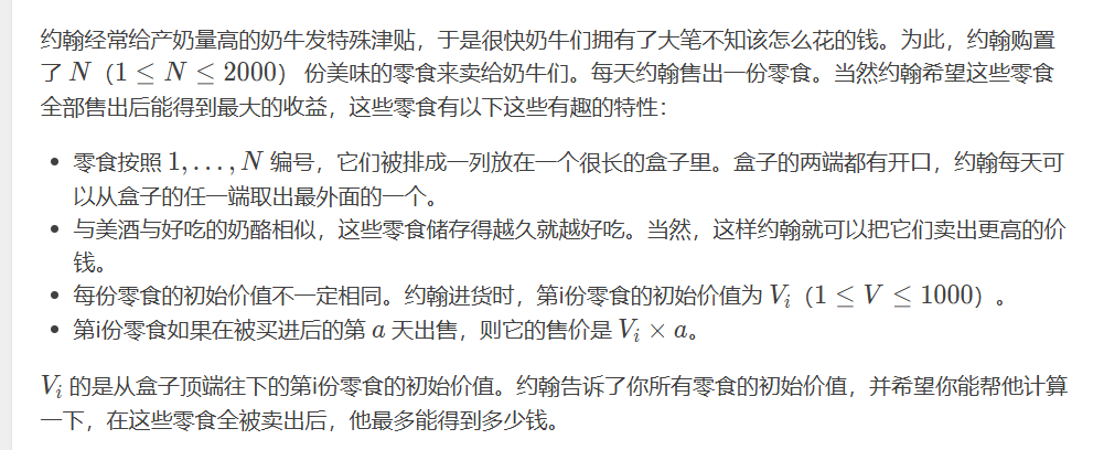dp[l][r]=max(dp[l+1][r]+v[l]*(n-len+1),dp[l][r-1]+v[r]*(n-len+1));