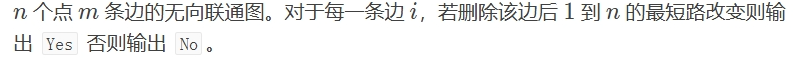 if(dis[a[i].x]+dis2[a[i].y]+a[i].z!=dis[ed]&&dis[a[i].y]+dis2[a[i].x]+a[i].z!=dis[ed])cout<<"No\n";//距离不相等