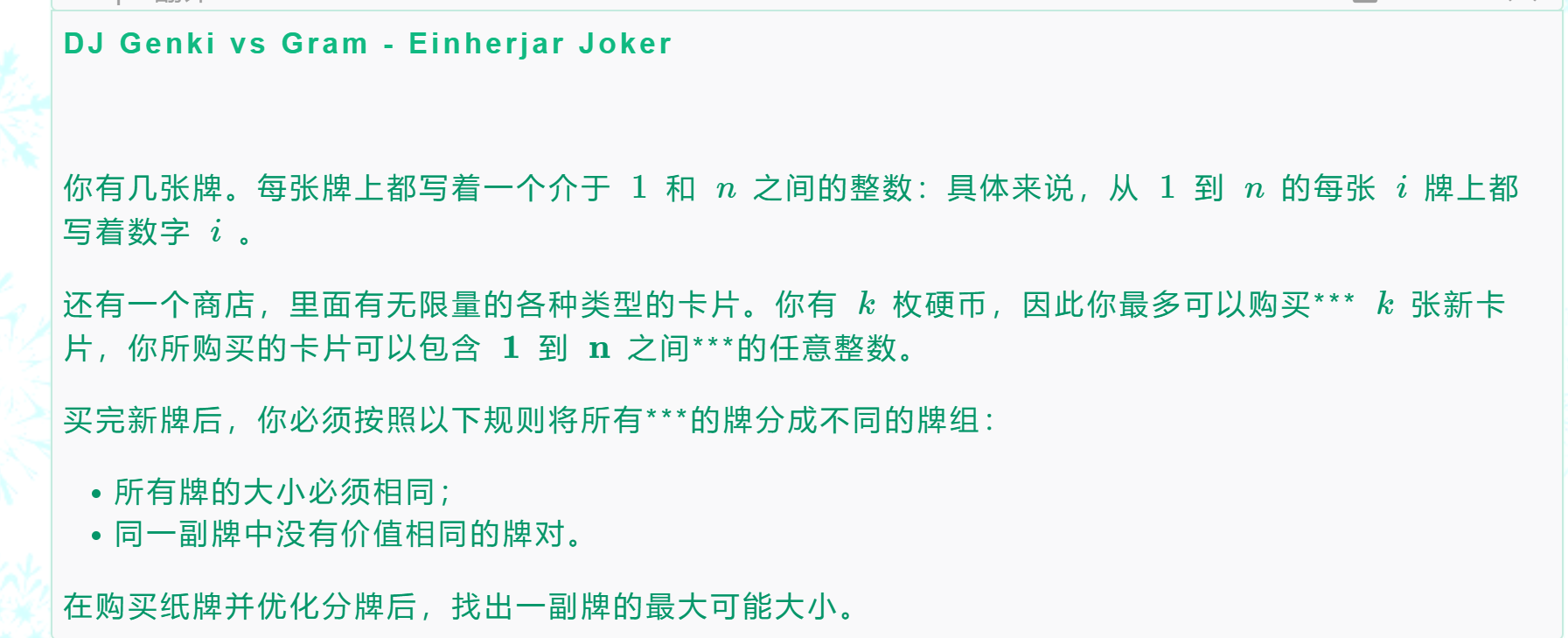 这道题其实就是要满足第二个式子 不同的是 我们要变通