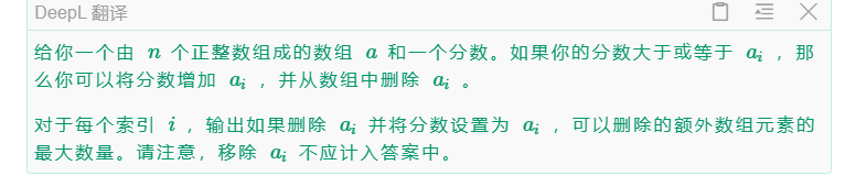 这题目意思有点逆天 意思是说你可以设置你的初试分数为ai 然后大鱼吃小鱼 输出你设置为ai时吃到的最多