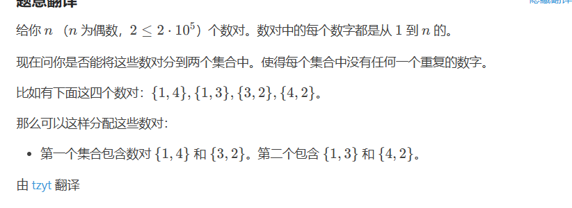 首先我们要明白这个需要开两倍 因为只有两个集合 两个关系 对于一个数 可能会出现两次 那么我们假设其出现时间 说白了就是输入顺序 分别为x.y 那么x+n其实就是y的集合 y+n就是x的集合