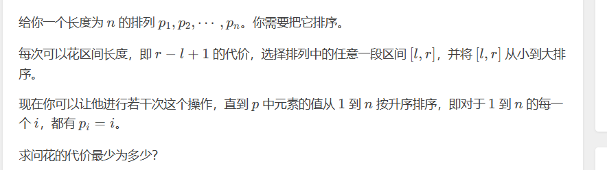 所以在遍历的时候 发现不符合的就可以定一个指针卡住,另一个指针往后走,找到正确的位置,区间就是代价。