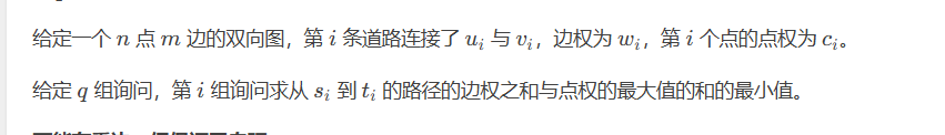 还有这题目并不是说求到了最短路,然后找出最短路的点权最大,就是此题答案,那不然太简单了,要的是和的最小值,注意审题了