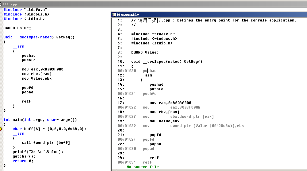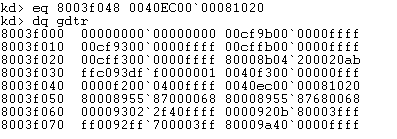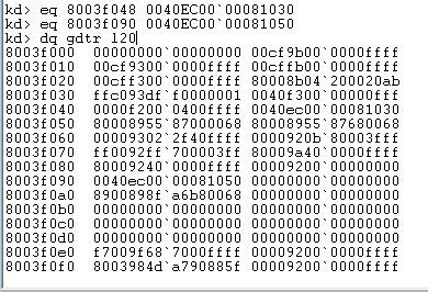 构造调用门描述符 0040EC00 00081020 放入地址0x8003f048中
