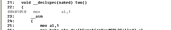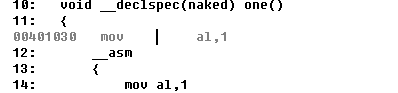 void __declspec(naked) one()