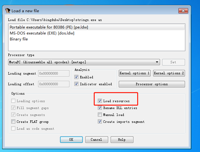 之后输入基地址,这样可以在IDA进行加载时就执行基址重定向相关工作,同时,还可以让IDA显示PE头部数据