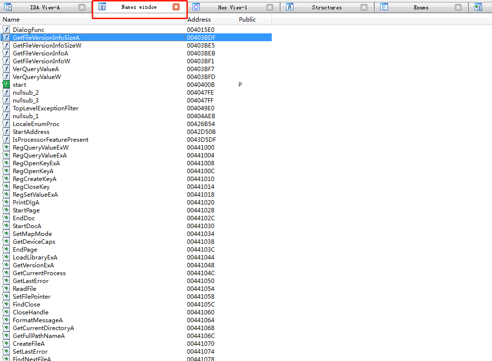 IDA解析出来的函数名称,字符串名称,变量名称等一些名称字符串