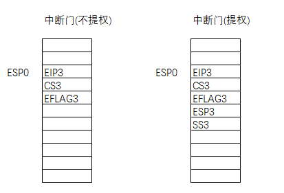 2.在权限切换的时候 向堆栈PUSH5个值 SS ESP EFLAG CS EIP