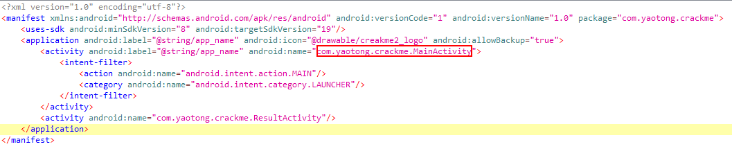主界面是我们的Launcher 我们打开AndroidMenifest.xml文件 找到主界面