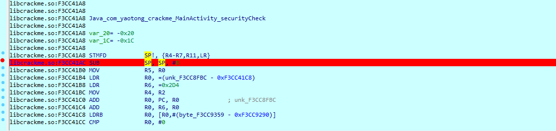 15.我们现在开始调试Java_com_yaotong_crackme_MainActivity_securityCheck这个函数