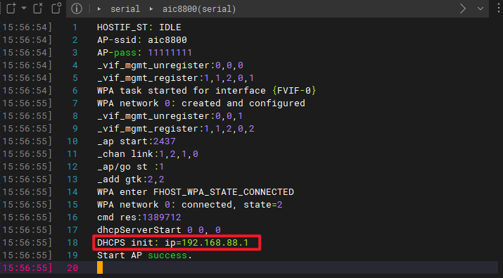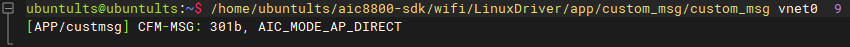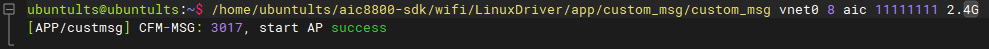 2、使用 custom_msg 开启 AP:custom_msg vnet0 8 aic8800 11111111 2.4G (可能需要先编译 custom_msg 这个应用)。