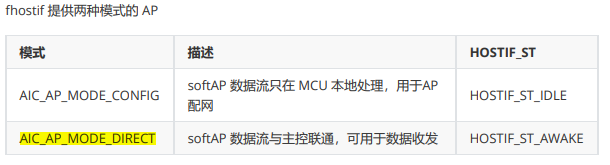 先开启 AIC_MODE_AP_DIRECT 模式则手机无法连接 MCU 的热点,原因尚未深究。