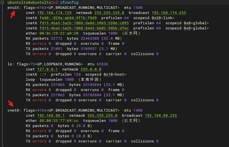 3、将 PC 中 vnet0 的 IP 设置为 MCU 的 IP:sudo ifconfig vnet0 192.168.88.1