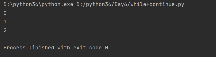 1 count = 0 2 while count < 10: 3 if count == 3: 4 break # 人为中断,当count=3时程序到此结束运行 5 print(count) 6 count += 1 7 else: 8 print('喵喵喵')