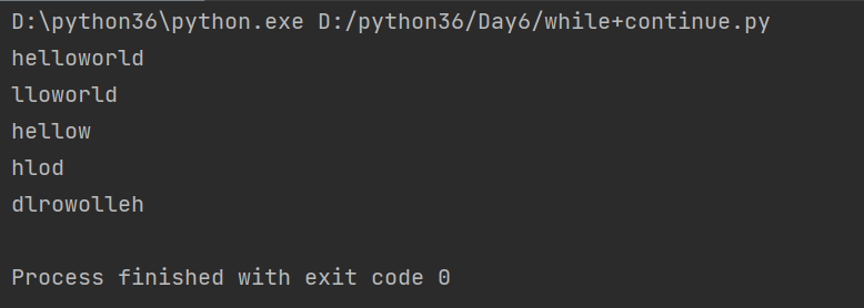 res = 'helloworld' print(res[::-1]) print(res[0:]) #helloworld print(res[2:]) #lloworld 冒号右边不写,一直切到结束 print(res[:6]) #hellow 冒号左边不写从0开始切 print(res[::3]) #hellow 冒号左边不写从0开始切 print(res[::-1]) # dlrowolleh,翻转字符串其中一种方式