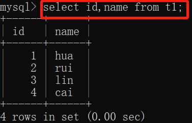 # 方式1: select name,salary from emp where name like '____'; #方式2: select name,salary from emp where char_length(name)=4;