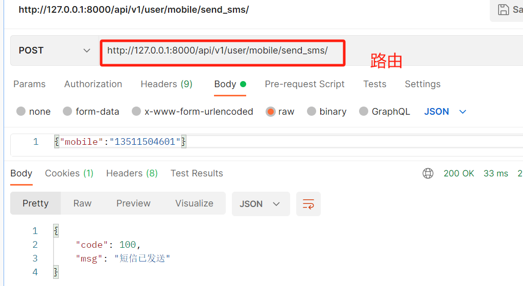 前端携带的数据---》{mobile:11111,code:8888}