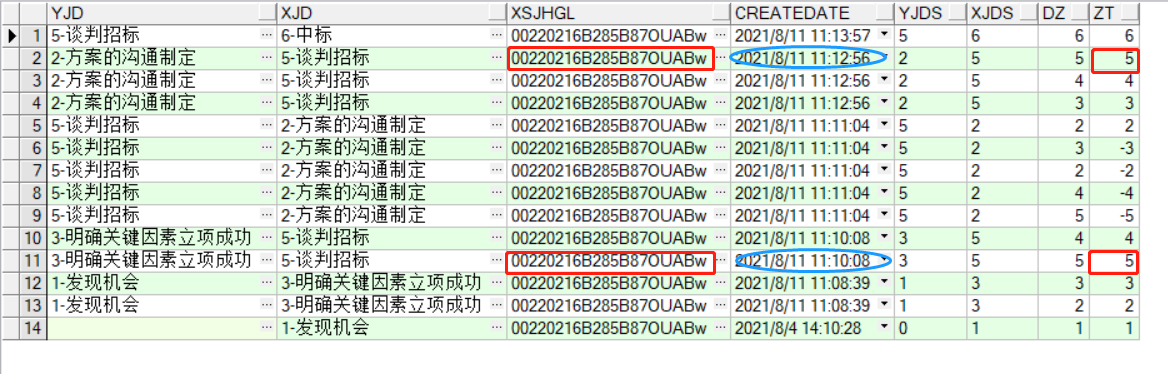 如上图,如果通过xsjhgl和zt来匹配,那么肯定有2行数据,但是我只想去实际最新的那条。添加圈起的代码