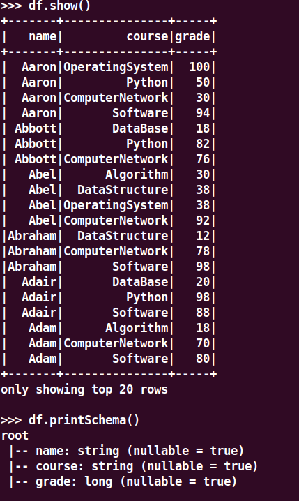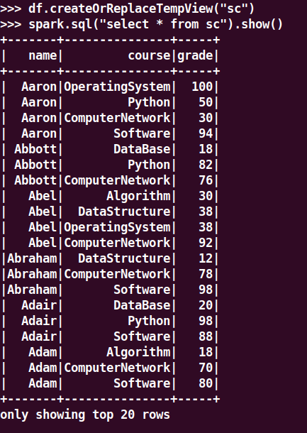 网盘下载sc.txt文件,分别创建RDD、DataFrame和临时表/视图;