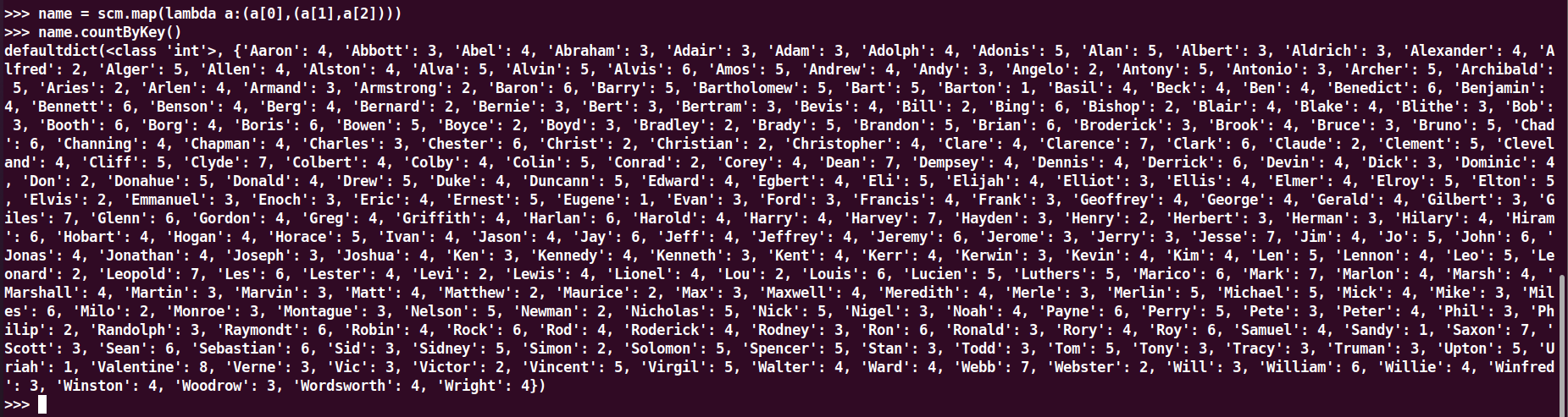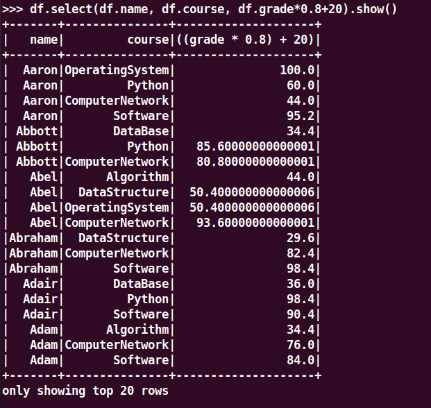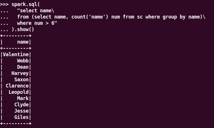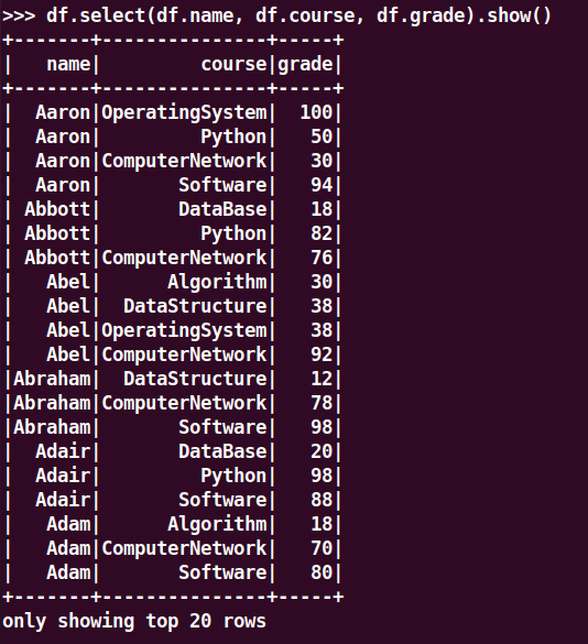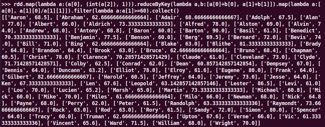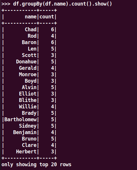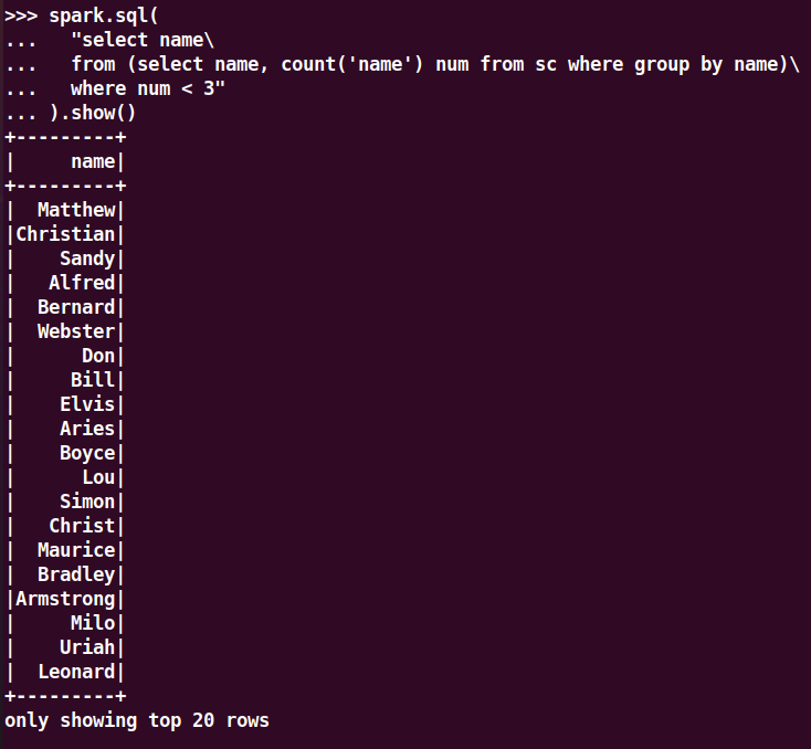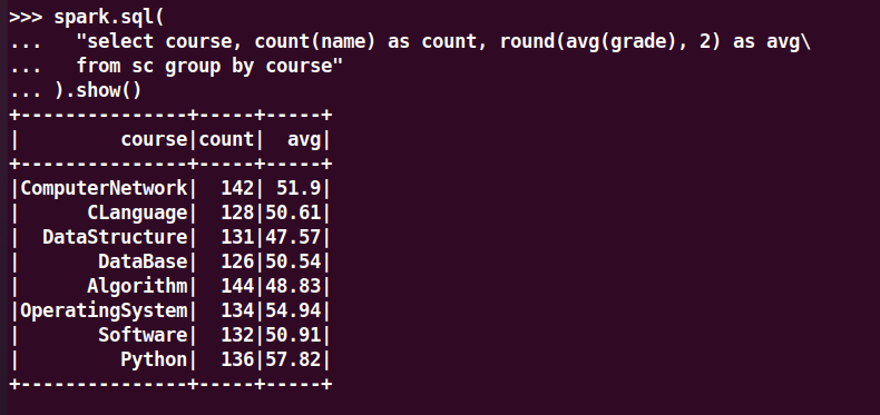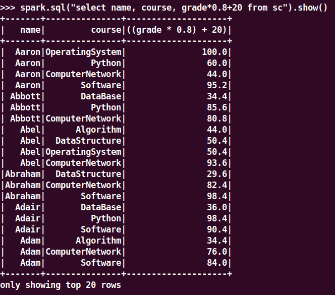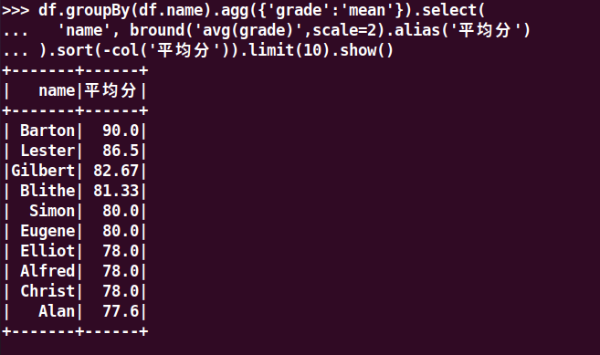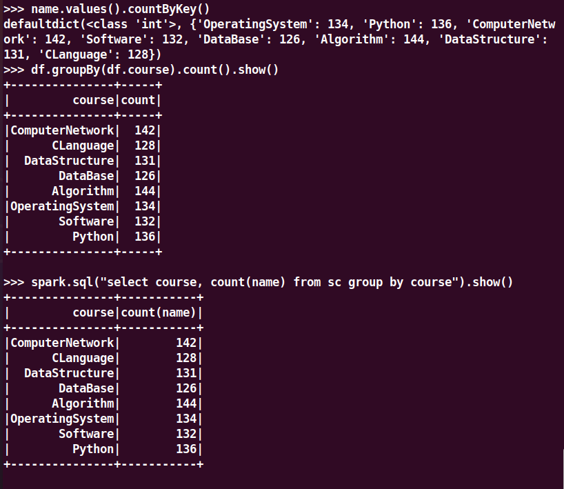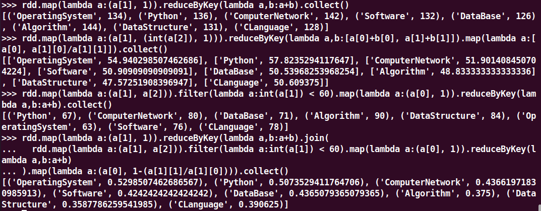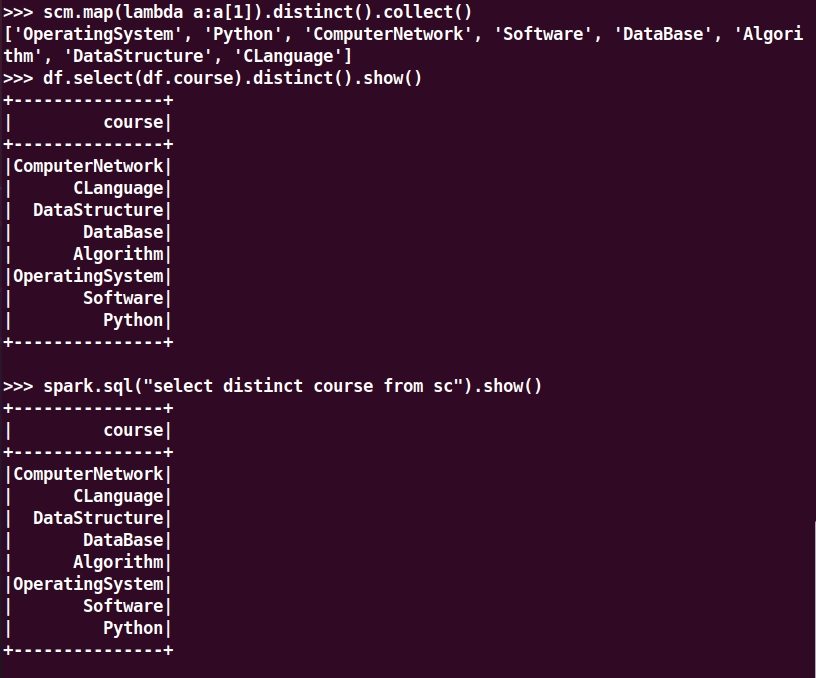 分别用RDD操作、DataFrame操作和spark.sql执行SQL语句实现以下数据分析: