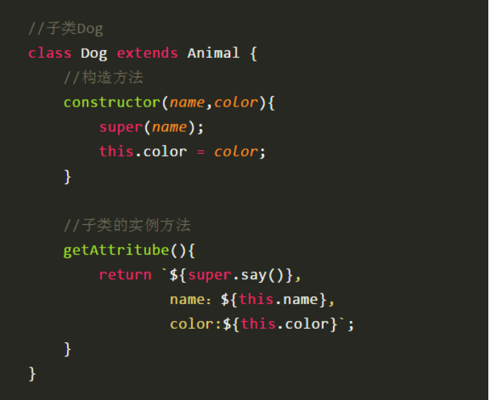 定义两个类,Animal类作为父类,Dog类作为子类,然后通过关键字extends来实现继承,此外,我们还注意到一个关键字super,它相当于是父类中的this。