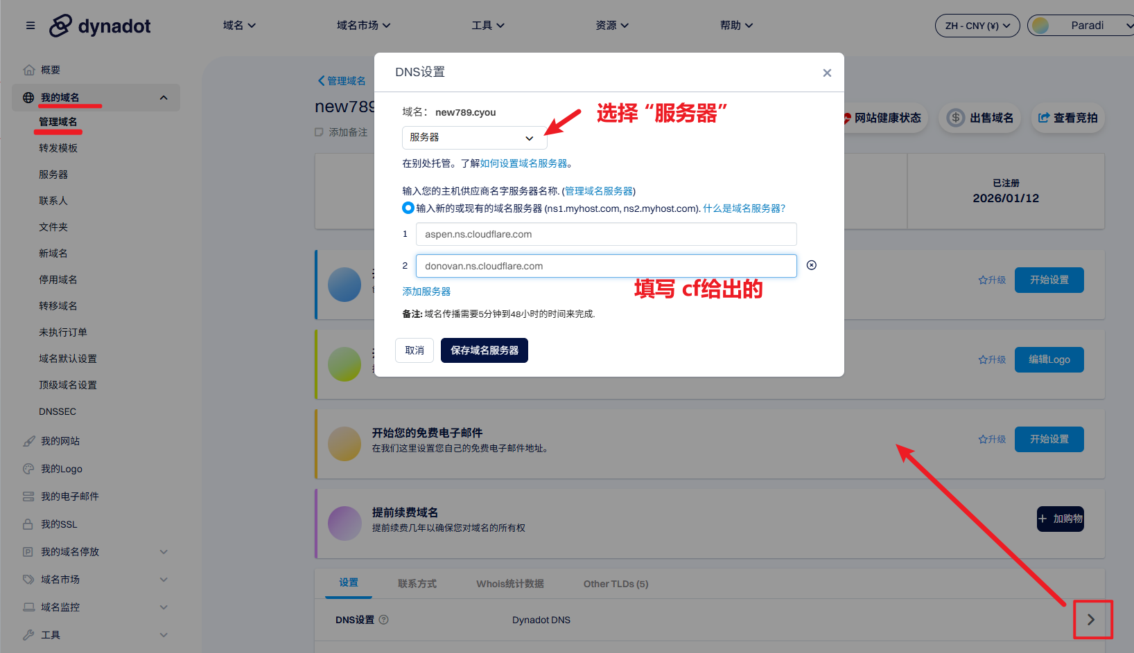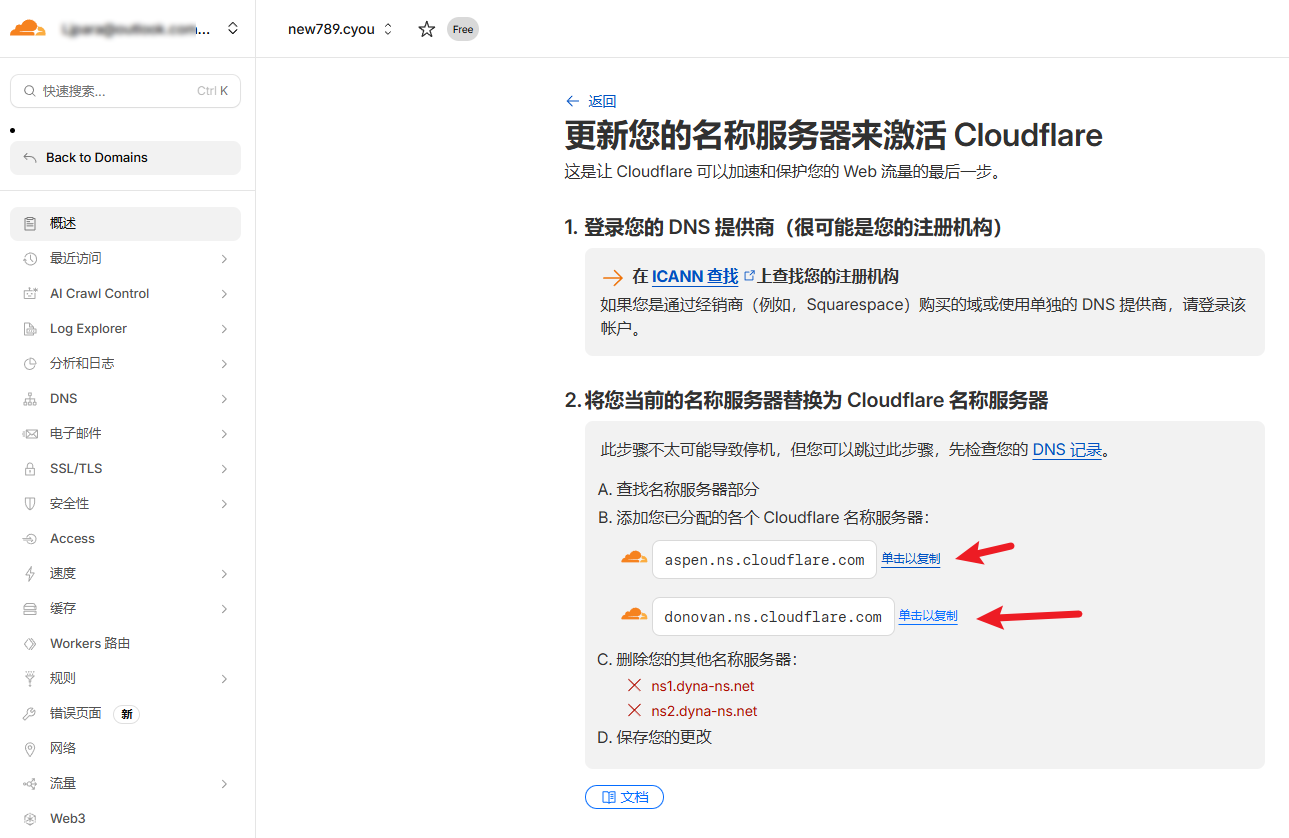 dynadot域名 托管到cloudflare