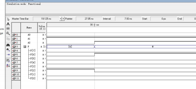 举例当 A0=A1=A2=0 时,输出为 0000001,;A0=A1=0,A2=1 时,输出为 0000100.