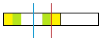 画个图理解一下,红蓝线分别表示 \(i, j\) 的回文中心,如果 \(j\) 超过红线,则出现"绿黄"回文串,同时在 \(j\) 的左侧出现"黄绿"回文串,与 \(j\) 是好的矛盾。