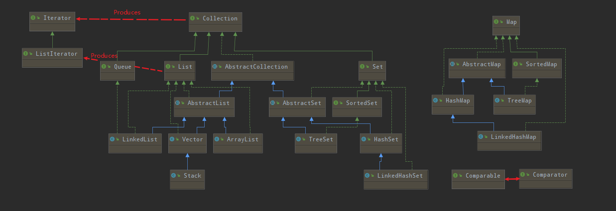 完整的容器分类法:这张图是把工作中常用到的实现类和相关接口使用UML类图辨识出来