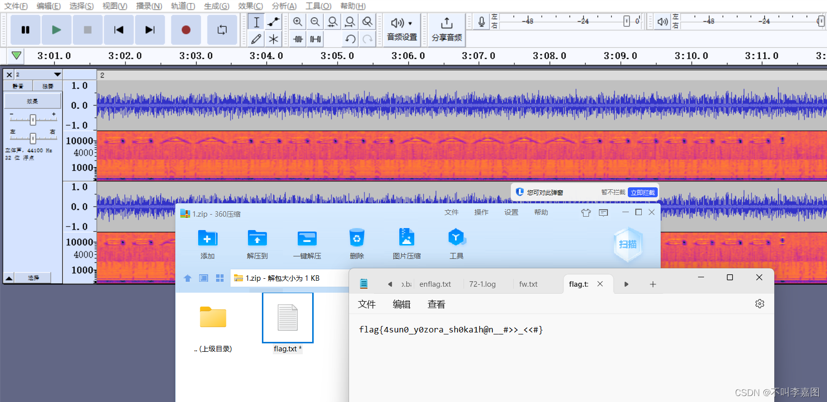 压缩包里面是一个音频文件 分析一下 发现了 音频后面一段 有key