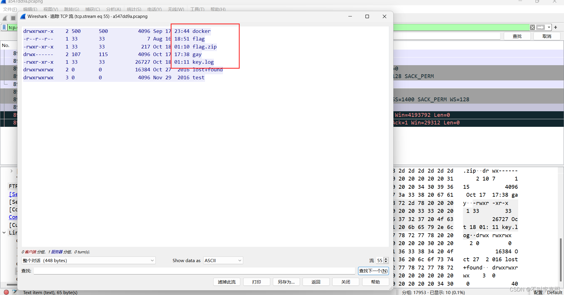 搜索key 出来一个key.log 里面是不是有 密码 这里不难看出出题人的思路 起了一个docker环境 传了一个flag文件 把文件压缩成zip 传了一个 key.log 结合之前我们没有发现 http 包 是不是被加密成 https包了