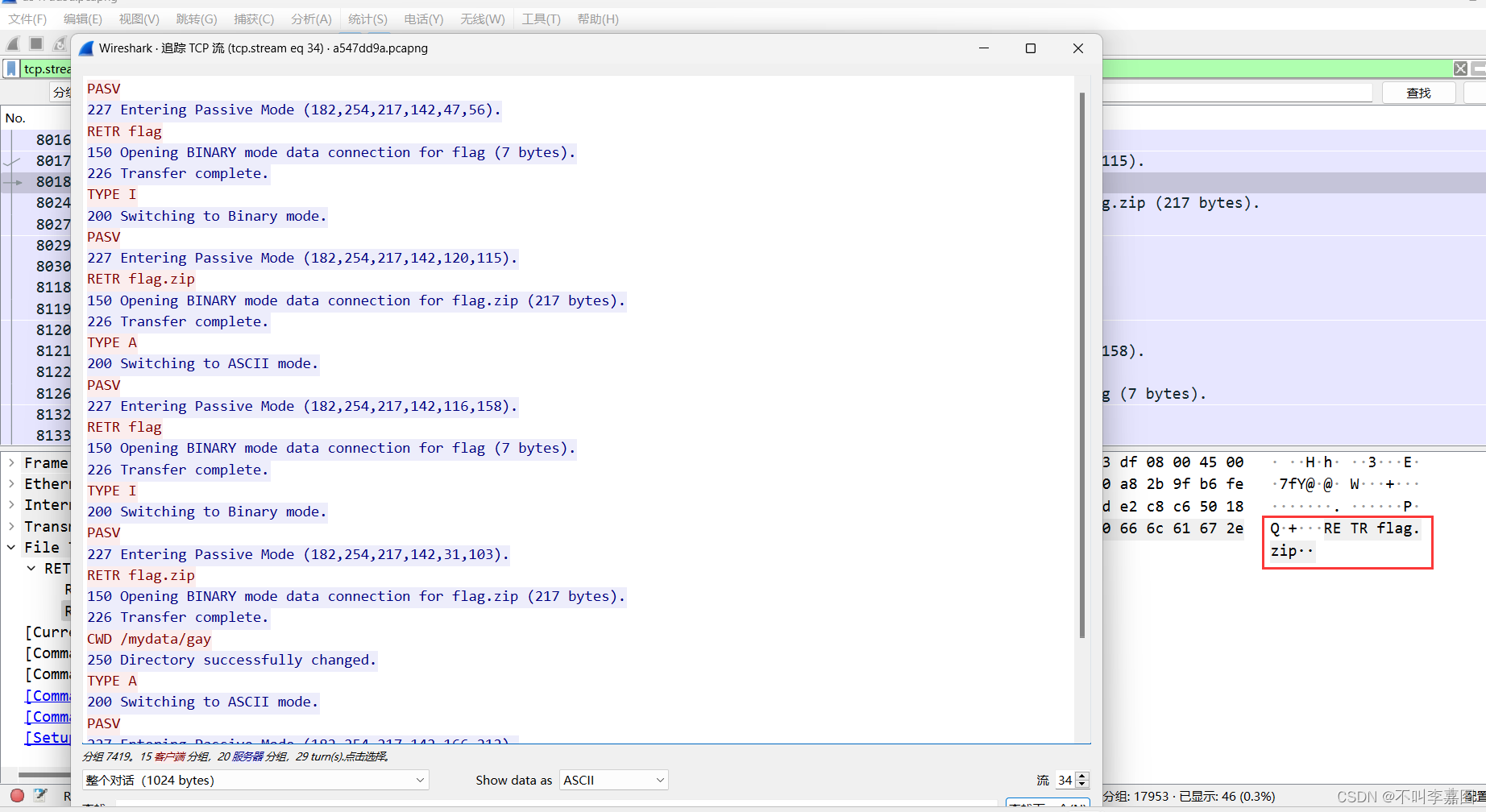 常规操作 搜索flag 发现有一个flag.zip 追踪流 看一下