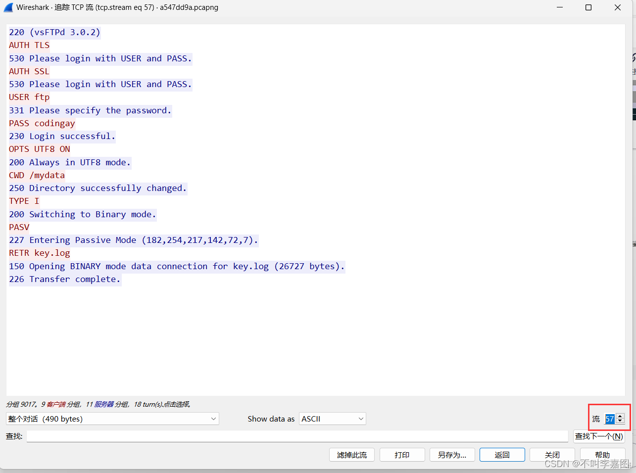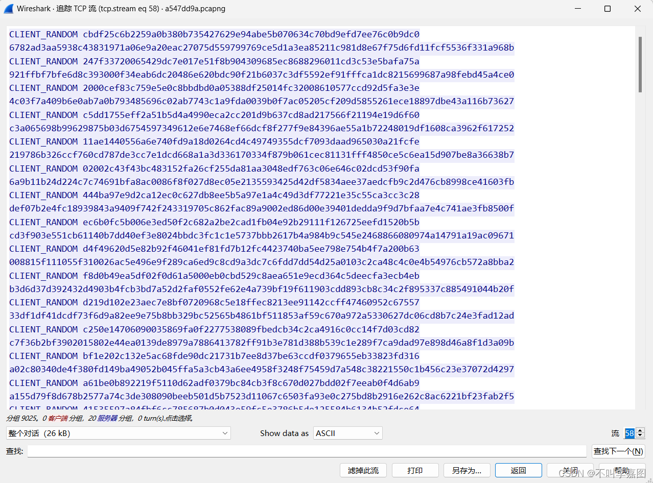 流57出现了key.log 不难猜测 流58就是key.log 我们转换成原始数据保存下来