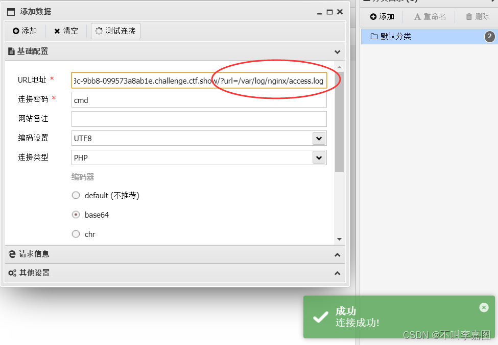 注意连接 位置 我们是上传一句话木马到日志文件里面去了