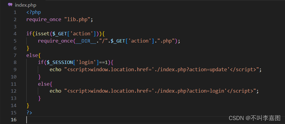 里面有一个文件包含 我们传给参数 ?action=update 试一下 显然不行 需要 session[login]=1