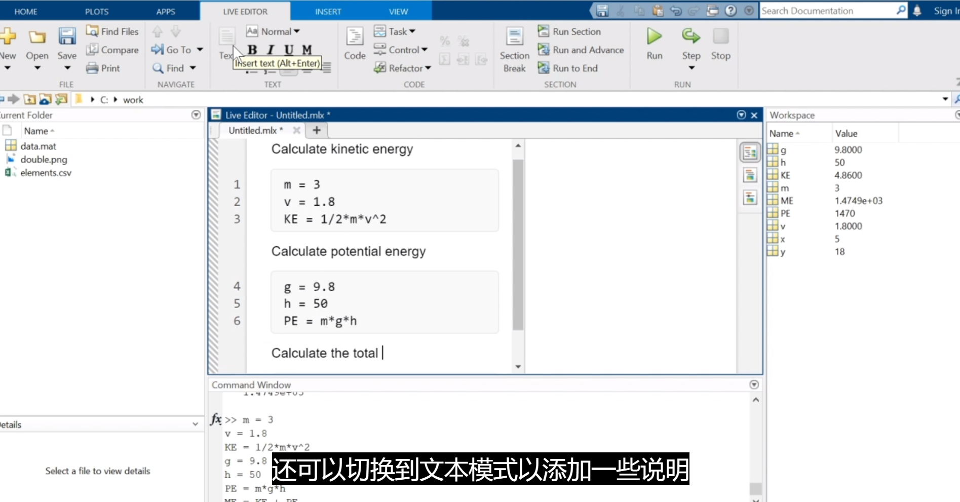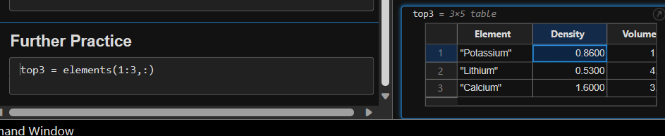 在命令的末尾添加分号将抑制输出,但仍会执行该命令,正如您在工作区中所看到的。当您输入命令而没有以分号结尾时,MATLAB 将会在命令提示符下显示结果。