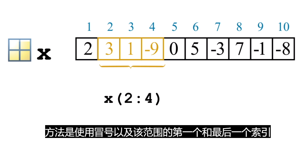 对于长向量,输入单个数值是不实际的。可用来创建等间距向量的替代便捷方法是使用 : 运算符并仅指定起始值和最终值: