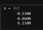 请试着输入 format long 并显示 x 的值。