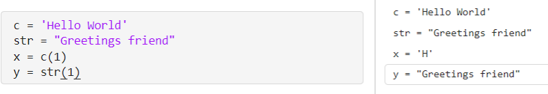 使用等号 (=) 创建变量。 左侧 (x) 是变量的名称,其值为右侧 (pi) 的值。 |