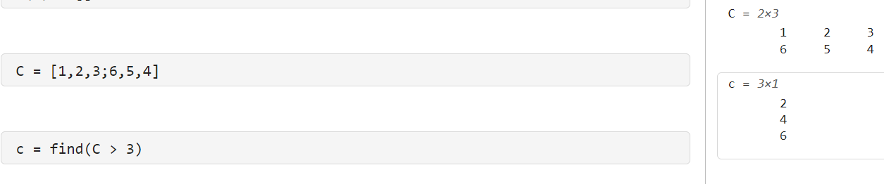 您可以组合使用空格和分号来创建一个矩阵,即包含多行多列的数组。输入矩阵时,您必须逐行输入它们。