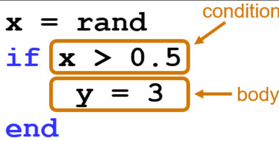 if x > 0.5 y = 3 else y = 4 end |