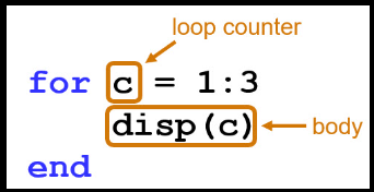 for c = 1:3 disp(c) end |
