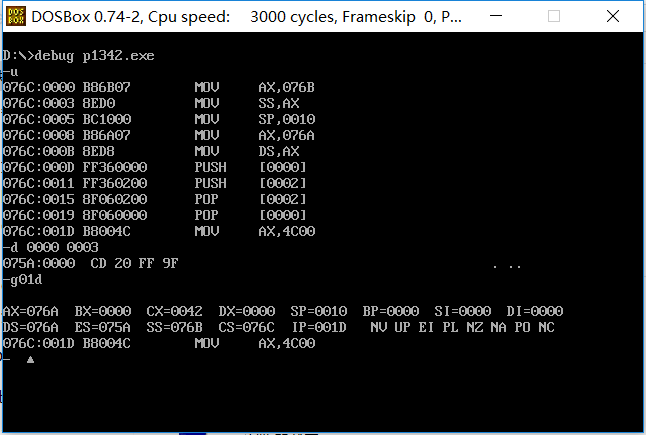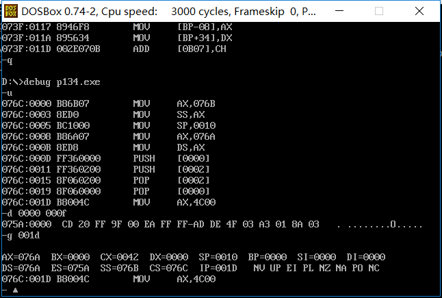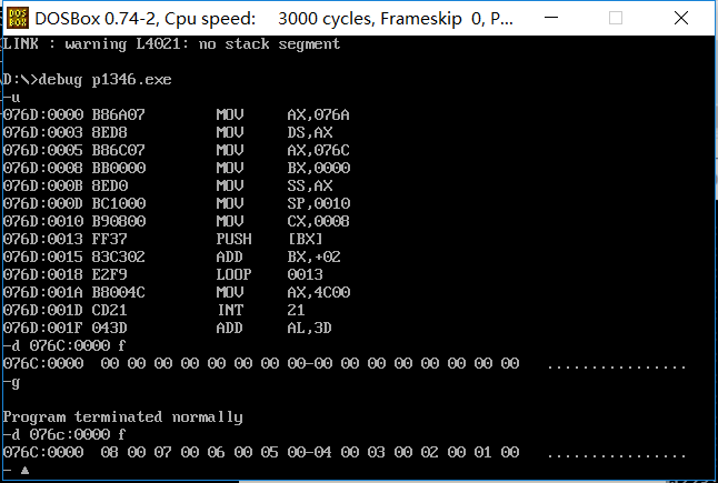 上图经过d 0000:000f 后显示的结果